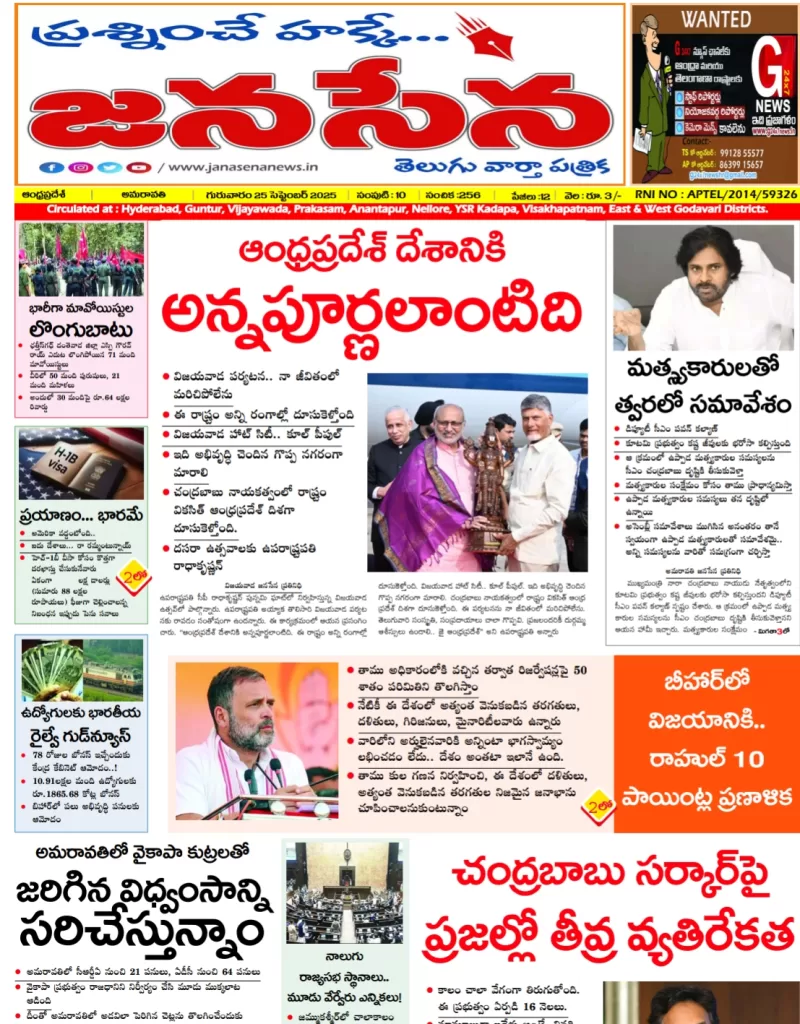 జనసేన న్యూస్ పేపర్ – తాజా తెలంగాణ, ఆంధ్రప్రదేశ్, జాతీయ, అంతర్జాతీయ వార్తలు, రాజకీయాలు, వ్యాపారం, క్రీడలు, వినోదం, ఎడిటోరియల్స్ ఒకే వేదికలో.”
