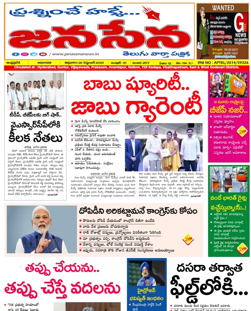 Janasena News Paper – Your daily e-paper for Telangana & Andhra Pradesh. Get the latest political updates, state news, business, sports, entertainment, and editorials – all in one place.