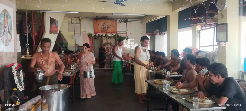 *దీక్ష స్వాములకు,భవానీలకు *చద్ది* మరియు భజన అనంతరం బిక్ష కార్యక్రమం ఏర్పాటు.మొన్నటి నుండి జనవరి 5 సోమవారం 2026 వరకు జరుగుతాయి. నేటితో 34వ సంవత్సరంలోకి అన్నదాన ప్రభువు శ్రీఅయ్యప్ప స్వామి ఆశీస్సులతో గురుస్వాములు అంబటిపూడి భానుమూర్తి స్వామి, శ్రీ పీ.వి.కృష్ణమూర్తి స్వామి మరియు శ్రీ కాకాని శివాజీ స్వామి, శ్రీ పన్నాల విశ్వనాథం గార్ల ఆధ్వర్యంలో అచంచలమైన మీఅందరి సహాయ సహకారాలతో దినదిన ప్రవర్ధమానముగా ప్రతి సంవత్సరం పెరుగుతున్న భక్తజనాదరణతో