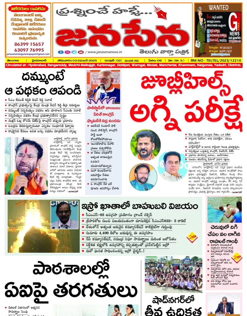 ఈ-పేపర్తెలంగాణజనసేన తెలుగు న్యూస్ పేపర్, తెలంగాణ, నవంబర్ 3, 2025 by క్రాంతి కుమార్ చేవూరిNovember 3, 2025055 Share0